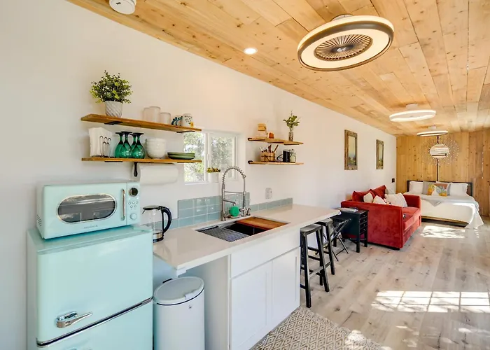 **The accommodations at the Modern Hill Country Container are thoughtfully designed to ensure ultimate comfort.** Each room features luxurious bedding and chic decor, promoting a serene atmosphere inspired by the natural beauty of the Texas Hill Country. With expansive windows that let in natural light and offer stunning vistas, guests can unwind in style. Additionally, modern amenities, including high-speed Wi-Fi and flat-screen televisions, cater to the needs of both leisure and business travelers.